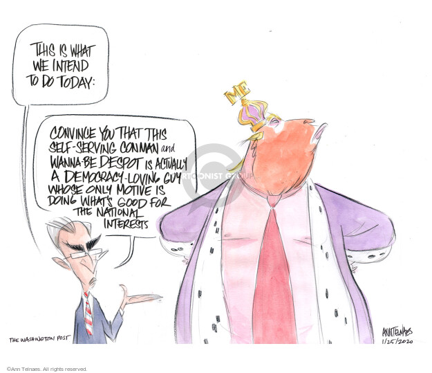 This is what we intend to do today: Convince you that this self-serving con man and wanna-be despot is actually a Democracy-loving guy whose only motive is doing what’s good for the national interests.